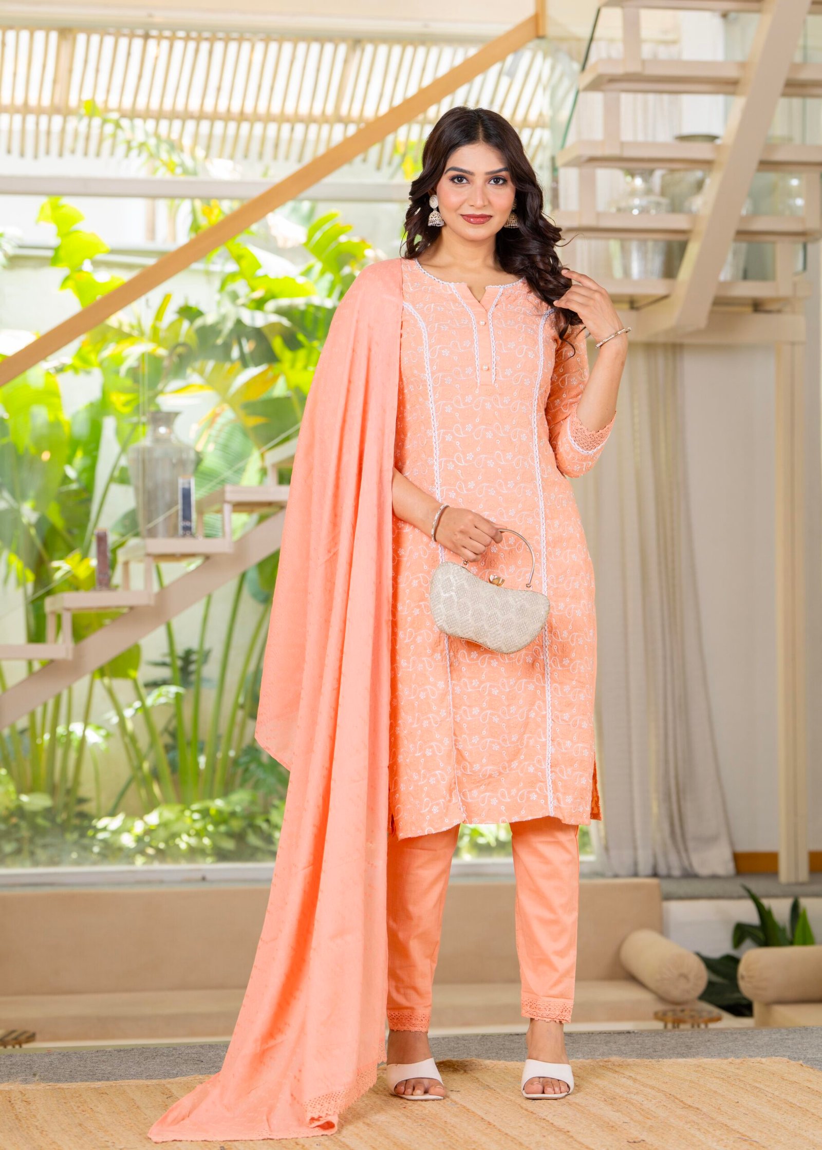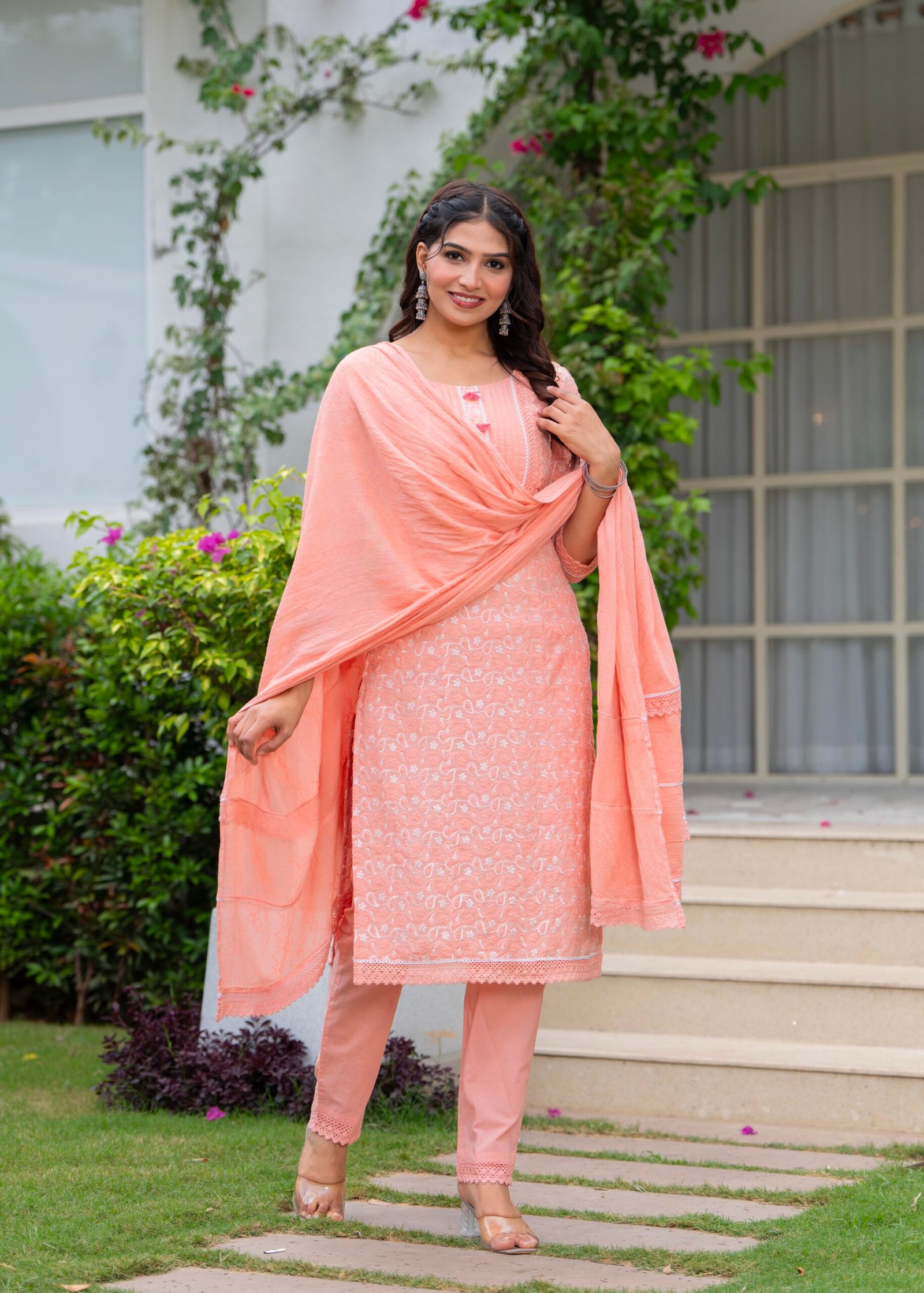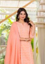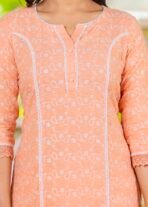 - Peach Embroidered Cotton Schiffili