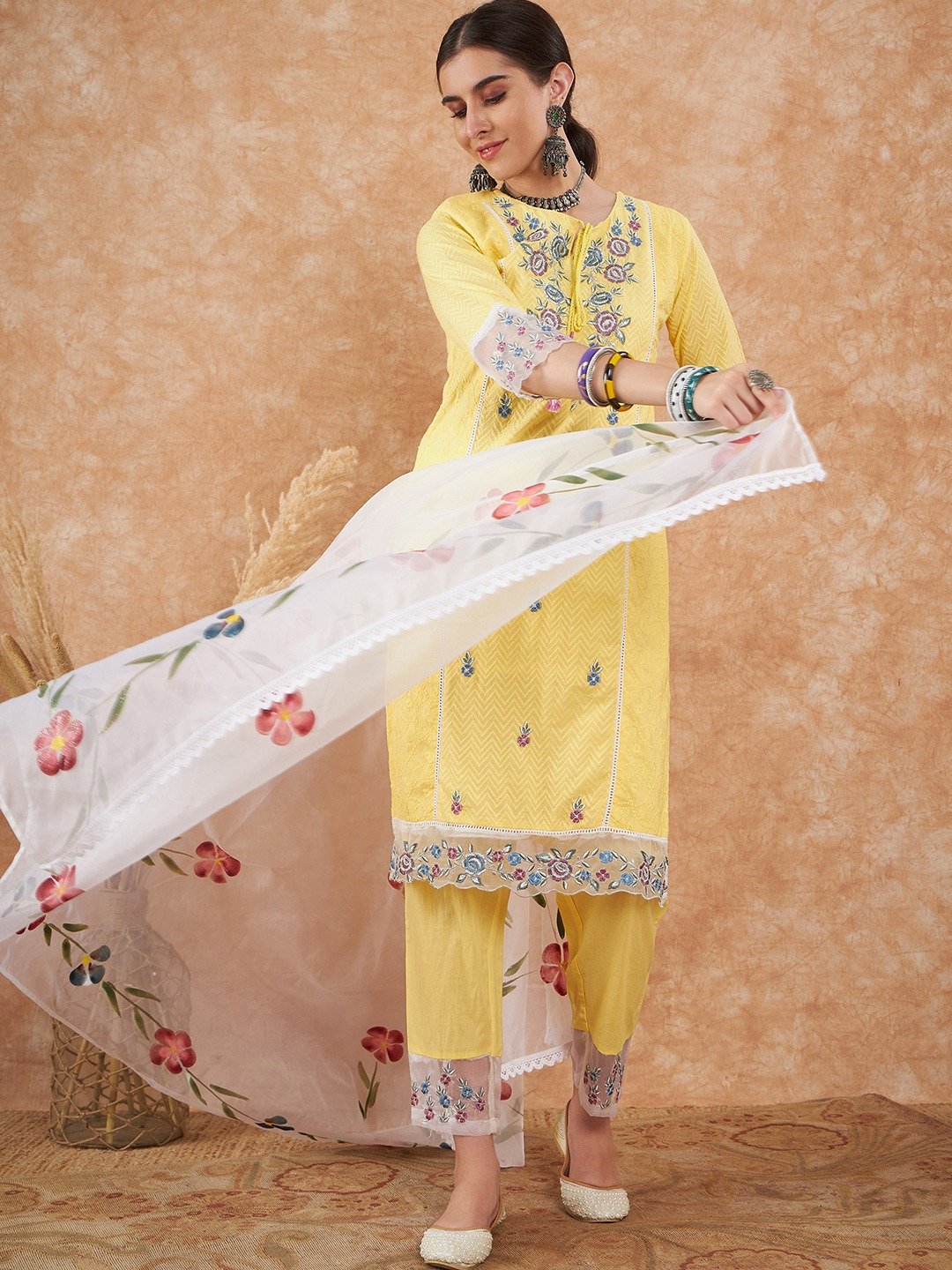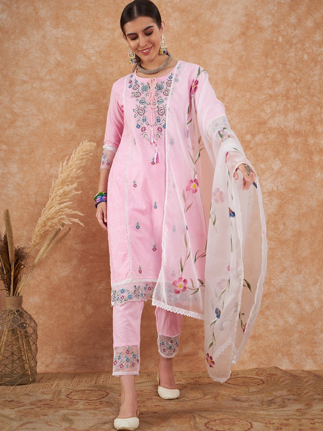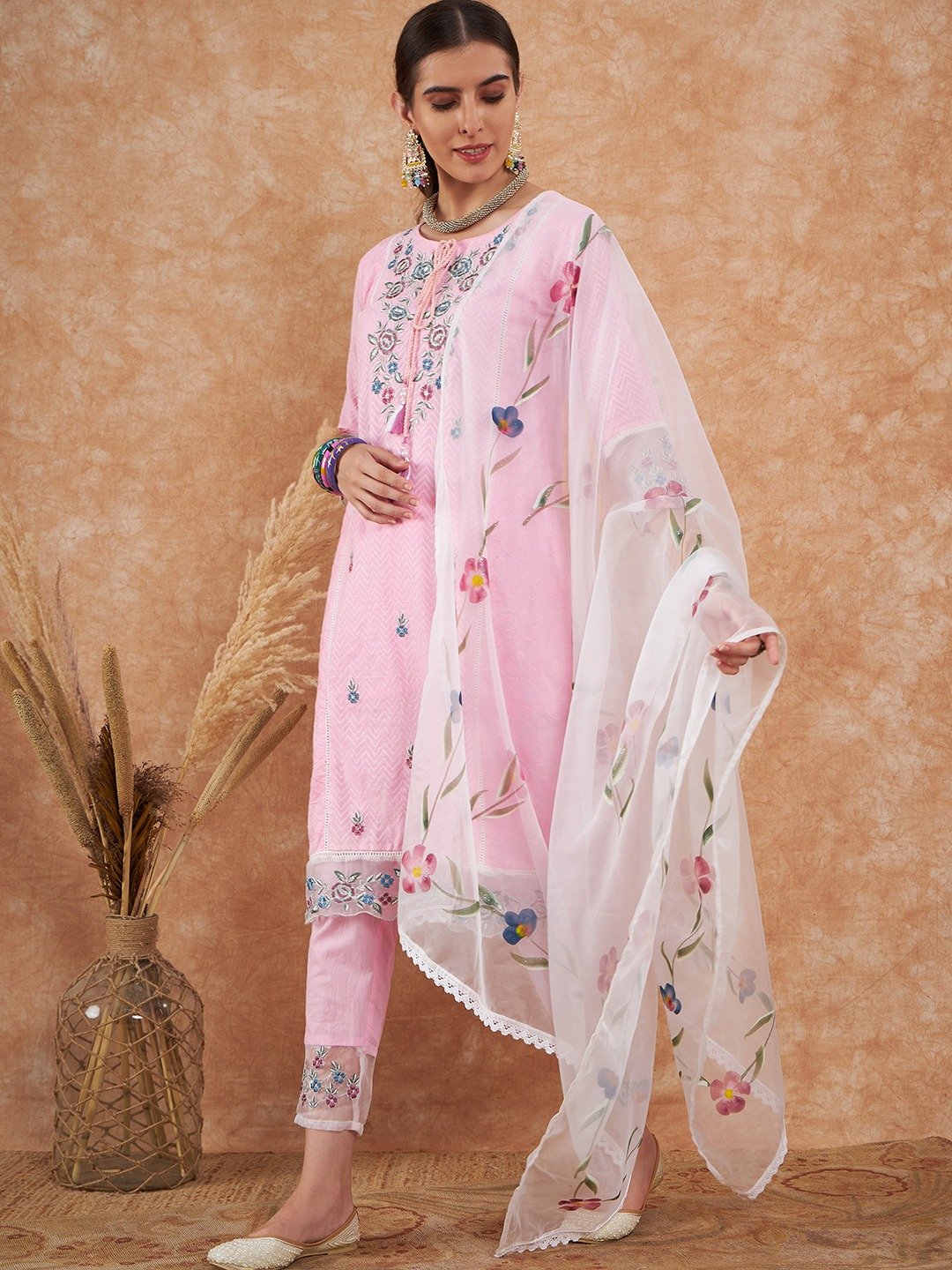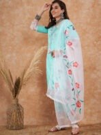 Cotton Schiffli Embroidered Kurta Pant and Dupatta
