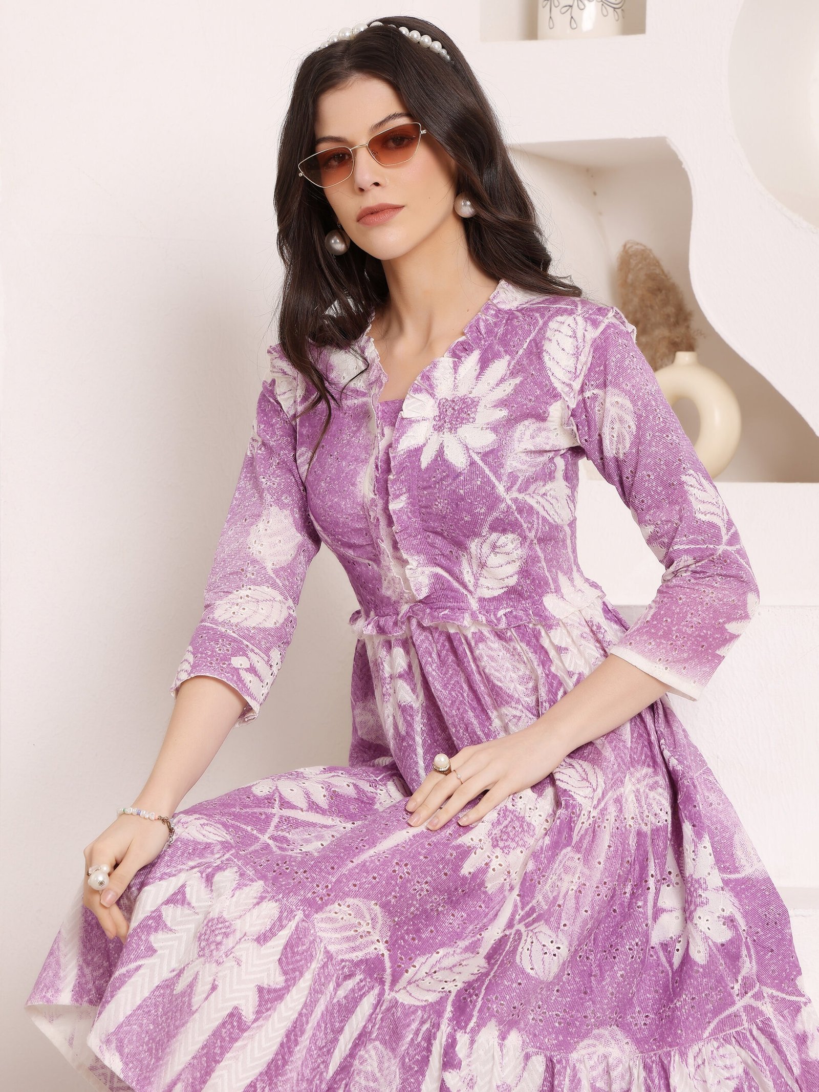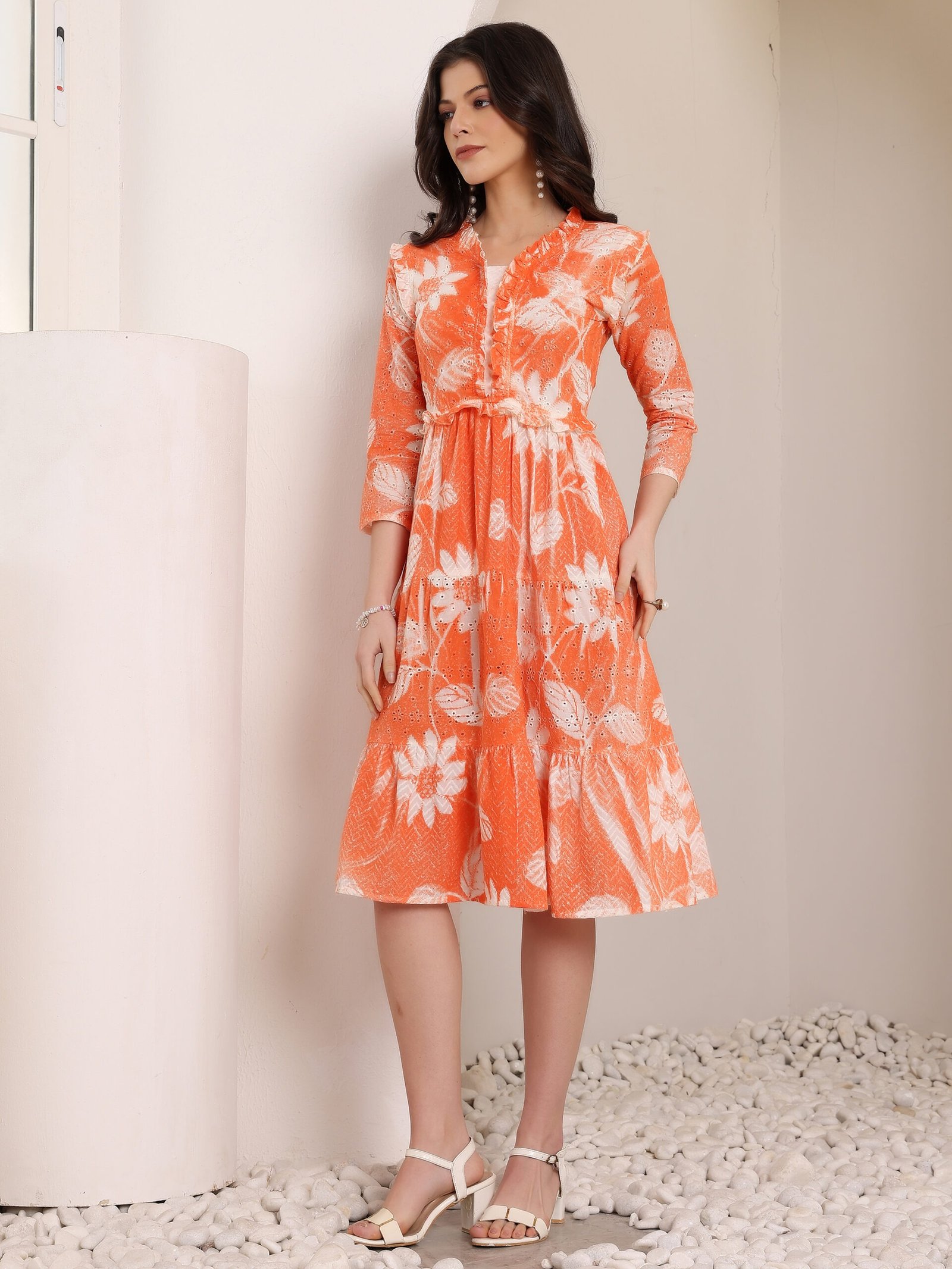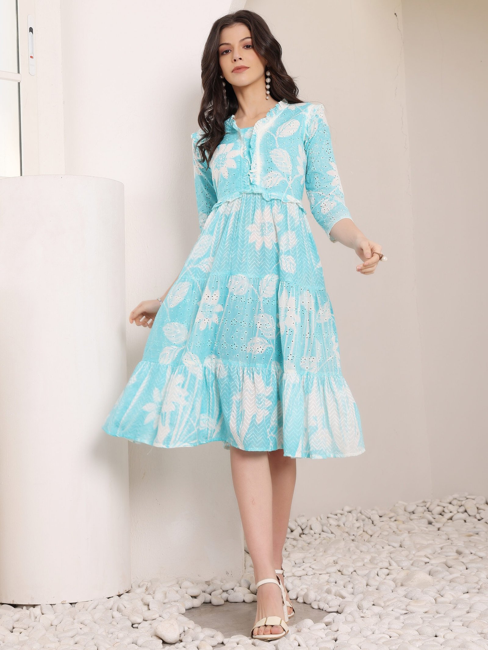 Cotton Schiffli Hand Printed Tiered A-Line Dress Original price was: ₹2,490.00.Current price is: ₹1,490.00.