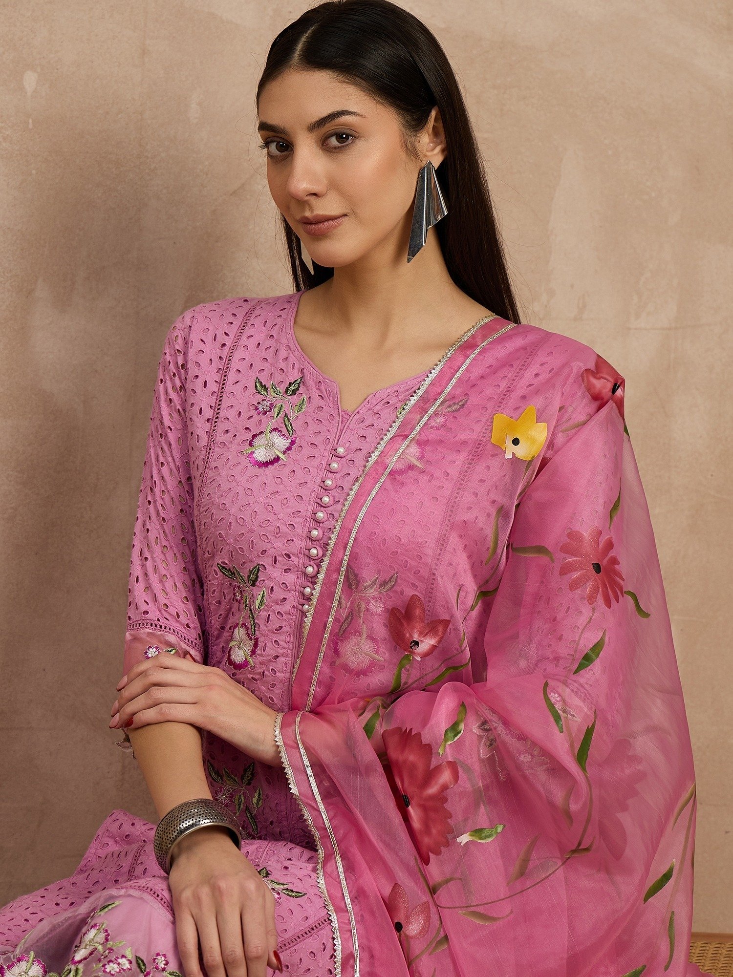 Schiffli Henley Neck Embroidery Work Pure Cotton Kurta, Pant and Dupatta Original price was: ₹2,490.00.Current price is: ₹1,390.00.