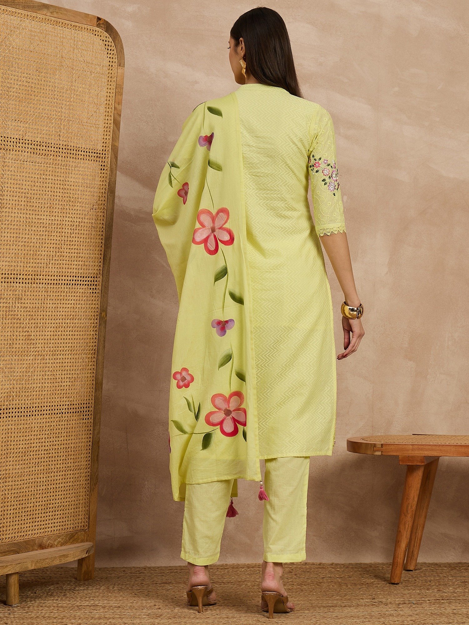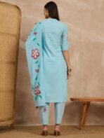 Schiffli Mandrain Collar Straight Style Pure Cotton Kurta,Pant and Dupatta Original price was: ₹2,490.00.Current price is: ₹1,390.00.