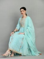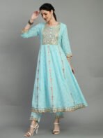 Be the first to review “Schiffli Thread and Mirror Work Pure Cotton Anarkali Kurta, Pant and Dupatta” Cancel reply